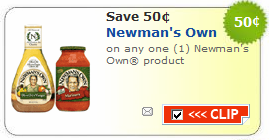 Coupons.com has several new coupons available and they have refreshed a few of the old ones. One of my favorite new ones includes the .50 off any Newman’s Own product since it can be doubled and used on any product.