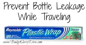 Before traveling, add a small piece of plastic wrap under the lids of any bottles you’re packing to prevent leakage.