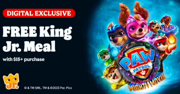 Free King Jr. Meal AND $10 Fandango Credit with Purchase at Burger King!