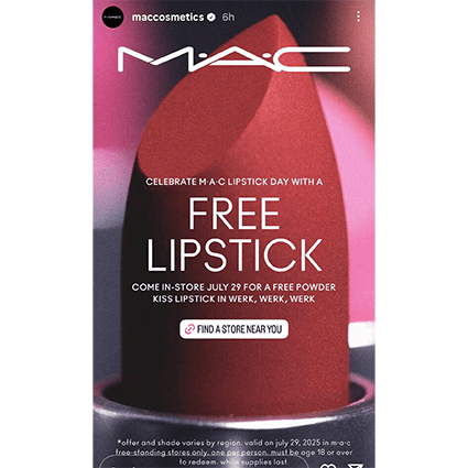 FREE Poweder Kiss Lipstick at MAC Stores on July 29th