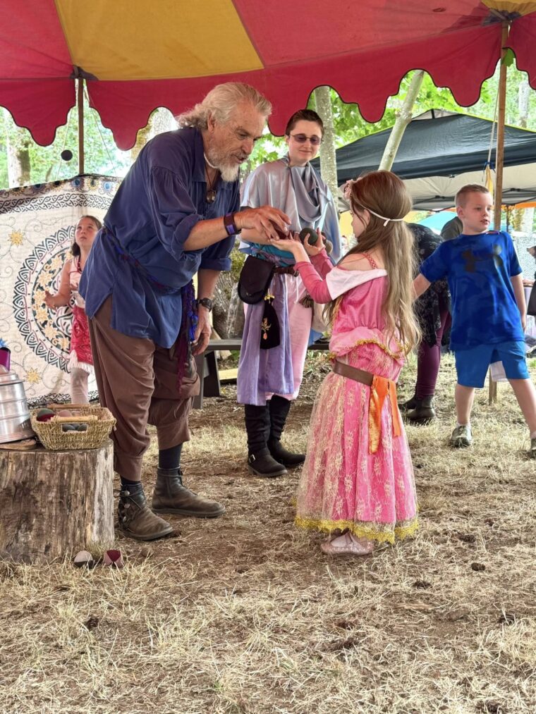 Layers are your friend – especially in Oregon, where the weather can change quickly. If you have a Renaissance-style outfit, wear it! It adds to the fun and helps you feel part of the action.