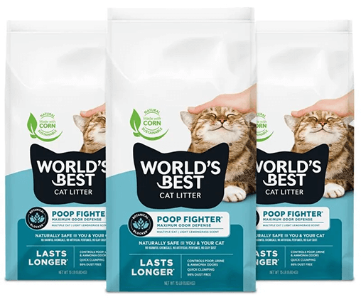 One (1) in one hundred (100) participants will be selected to receive up to a one (1) year (i.e., twelve (12) month) supply of Poop Fighter® formula litter. A twelve (12) month supply constitutes six (6) free bag coupons, each good toward a 15 lb bag of World’s Best Cat Litter®, any formula, with a retail value of $26.20/bag. Only up to one hundred (100) one (1) year supply winners will be selected.